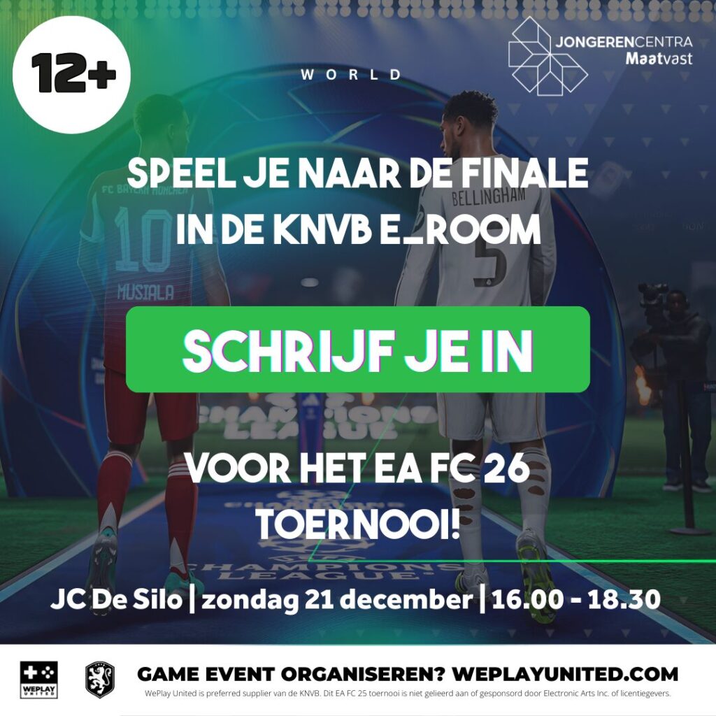 Ben jij klaar om te laten zien wie de ultieme EA FC 26-kampioen is? Kom op zondag 21 december van 16.00 tot 18.30 uur naar JC De Silo en speel mee in het coolste gaming event van Hoofddorp!